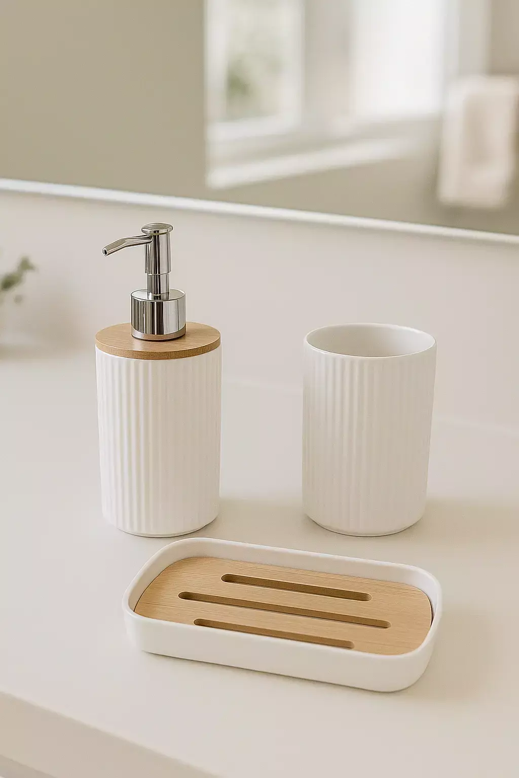 Set de Baño 3 Piezas Bambú Blanco – Elegancia y funcionalidad para tu baño